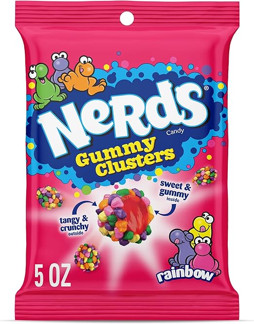 Информация о товаре: Жевательные конфеты Nerds Gummy Clusters, упаковка 141 г. Тип продукта: САХАРНЫЕ КОНФЕТЫ. Бренд: Nerds. Размер: 141 г. Количество в упаковке: 1. Показать больше